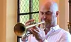 Jazztrumpetaren Erik Palmberg står närmast på programmet och gästar konserthuset nu på tisdag med sin sextett. Här under en spelning i Lundby kyrka i augusti. Foto: Claes Tillander