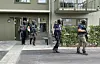 De tungt beväpnade poliserna lämnar platsen. Foto: Jonas Edberg