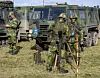 Personal i övningsledningen utmärks av att dessa bär en blågul armbindel över vänster arm.