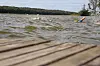 Strålande sol – men det var på sina ställen hög sjö ute på Västeråsfjärden i lördags. Det satte deltagarna på hårda prov i simdelen av Västerås Swimrun.