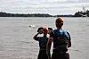 ”Landstigning” vid Kedjeön inför påhejande publik.Foto: Jonas Bergkvist