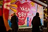 Målningen är 7x4 meter och har sprayats och målats med roller på skivor som sedan monterats på väggen.