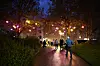 Men den här vintern lyser riktade ljuskällor upp trädstammarna och i trädkronorna hänger lysande färggranna bollar.