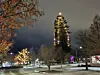 Den drygt 27 meter höga granens topp har för första gången utrustats med en julstjärna och från toppen hänger även långa ljusslingor ner.